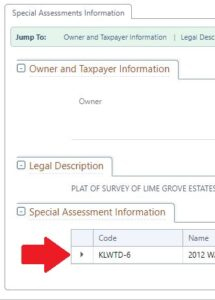 - Click on the arrow that’s in the left most box of the Special Assessment Information table